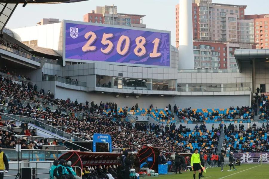 尽管3月初的津城依然春寒料峭,比赛时气温不足10℃,体感温度仅有1℃左右,但依然有25081名球迷来到现场,为心爱的主队加油,帮助他们渡过难关。